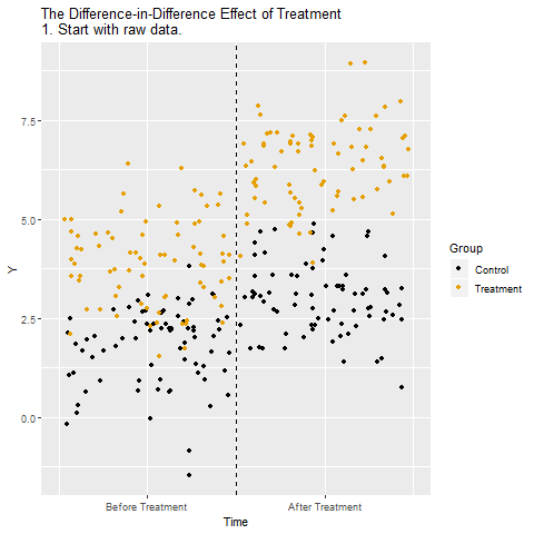 Bir işlemin/uygulamanın (Treatment) Y üzerindeki etkisini ölçmek istediğimizde, en basit yol Treatment alanlarla almayanları karşılaştırmak gibi görünebilir. Yani sadece “İşlemin/Treatmentın uygulandığı şehirler ne kadar büyüdü, kontrol şehirleri ne kadar büyüdü?” diye bakarız. Fakat bu yaklaşım yanıltıcı olabilir çünkü İşlem ile Y arasındaki ham ilişki genellikle başka faktörlerden de etkilenir.
