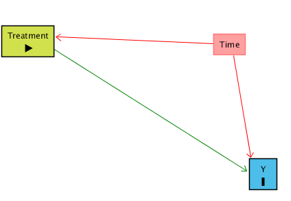 Buradaki temel sorun, İşlem’i uygulayan ve uygulamayan grupların birbirine benzememesidir. Eğer İşlem ile Y arasında başka bir değişken (X) ortak olarak rol oynuyorsa, bu durumda gizli yol (back-door path) oluşur. Yani Y üzerindeki farklar yalnızca İşlemin etkisinden değil, aynı zamanda X’in hem İşlemi’i hem de Y’yi etkilemesinden kaynaklanır