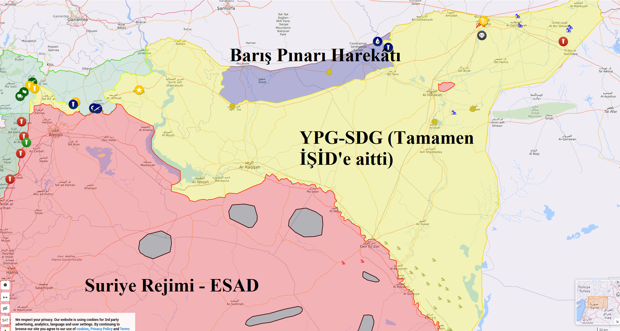 Aralık 2017'ye gelindiğinde, IŞİD halifeliği, en büyük iki mülkünü -Irak'ın ikinci büyük şehri Musul ve Suriye'nin kuzeyindeki sözde başkenti Rakka - ve topraklarının yüzde 95'ini kaybetti. Irak Başbakanı Haydar El Abadi 9 Aralık 2017'de Irak'ta İslam Devleti'ne karşı zafer ilan etti. Ancak IŞİD hâlâ takipçilerine ilham veriyor ve New York dahil dünyanın her yerinde saldırılar gerçekleştiriyordu. 2018'de, IŞİD'e karşı seferin odak noktası, Suriye Demokratik Güçleri (SDG) olarak bilinen ABD destekli Suriyeli Kürtler ve Araplar koalisyonunun (çoğunluğunu YPG oluşturuyor) kademeli olarak IŞİD'in kilit konumlarını ele geçirdiği doğu Suriye'ye kaydı. SDG, Türkiye'nin Kürt (SDG= mevzilerine yönelik saldırılarının dikkatini başka yöne çekmesinin ardından Kasım 2018'de saldırısını kısa bir süreliğine askıya almıştı. 14 Aralık'ta SDG, Hacın kasabasını ele geçirdi. Hajin'in düşüşü IŞİD topraklarını Fırat Nehri boyunca Irak sınırına yakın birkaç köye indirdi (SDG’nin Suriye’deki İŞİD topraklarına çökmesinden anlayabilirsiniz)