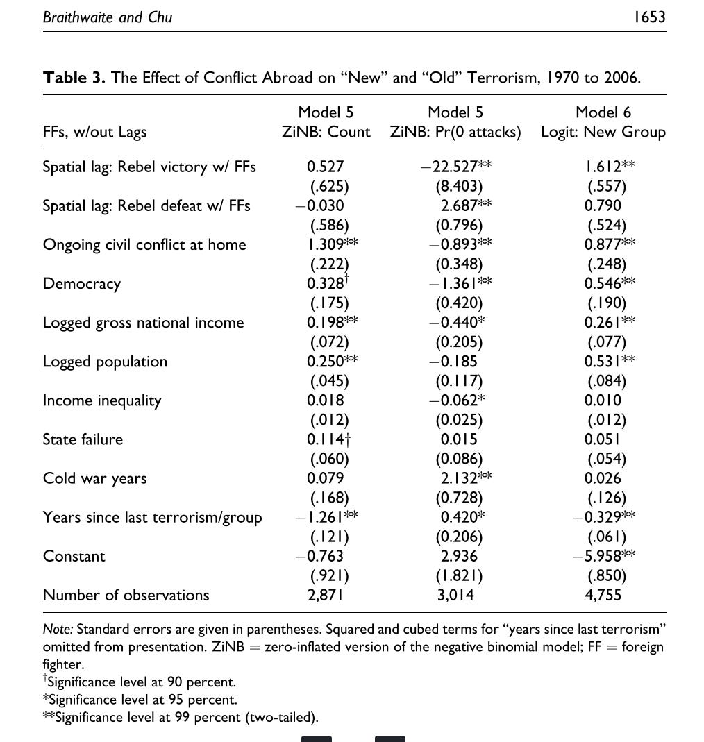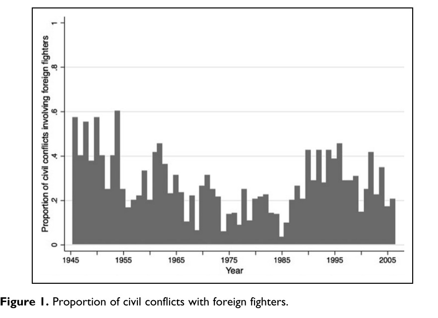 Braithwaite, A., & Chu, T. S. (2018). Civil Conflicts Abroad, Foreign Fighters, and Terrorism at Home. Journal of Conflict Resolution, 62(8), 1636–1660. https://doi.org/10.1177/0022002717707304.