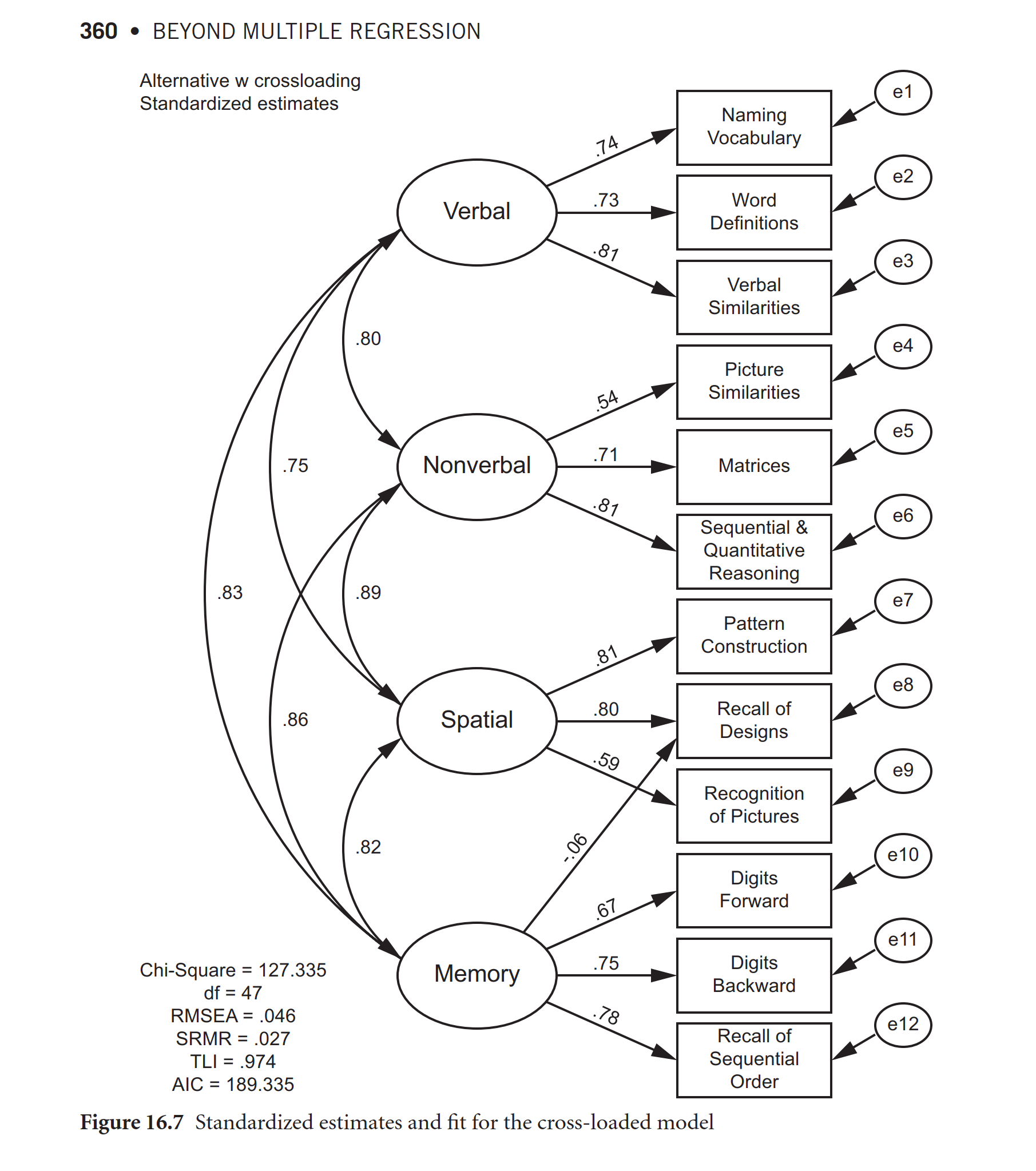 Aşağıdaki görsele bakalım. Recall of Designs (dizayn anımsama) testinin, Memory (bellek) faktörüne yüklenmesi denenmiş. Fakat faktör yükü, Spatial (uzamsal) faktöre kıyasla oldukça düşük kalmıştır. Bu durum, testin aslında bellek kapasitesinden çok uzamsal-mekânsal yetenekleri yansıttığını göstermektedir.