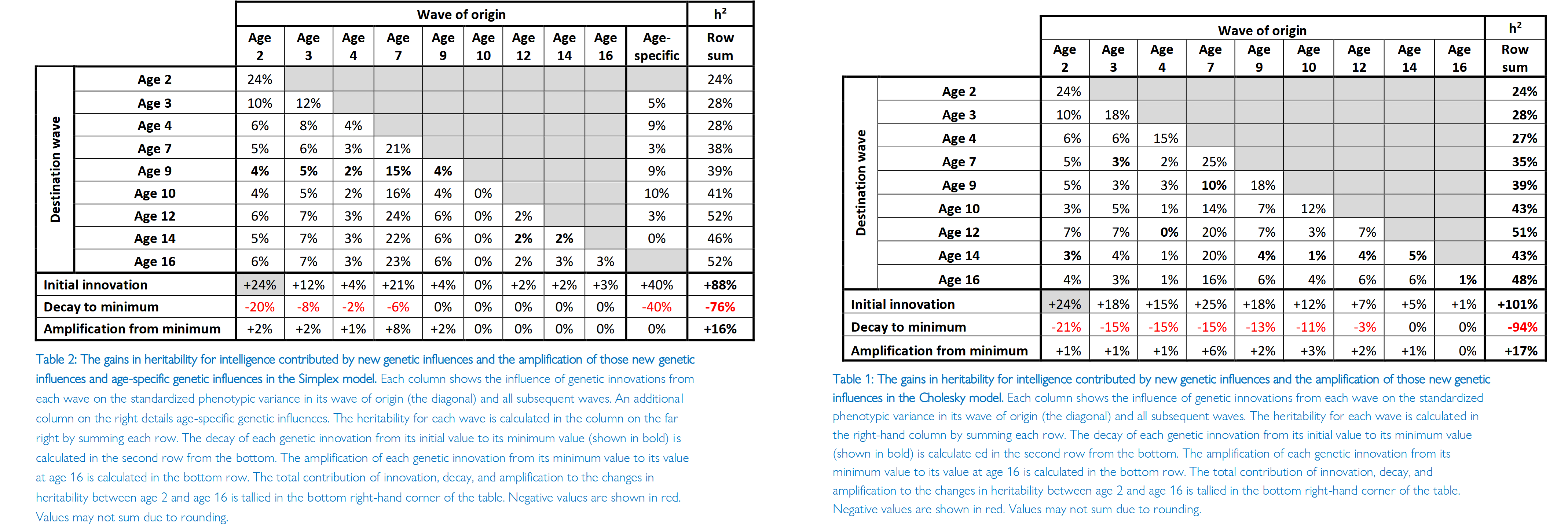 Morris çalışması bunun da doğru olduğunu buldu, özellikle de ileri çocukluk ve ergenlik döneminde. IQ’nun stabilizasyonu iki bölümlü bir süreçtir: yeni genler devreye girer (inovasyon) ve eski genler amplifiye edilir (güçlenir).